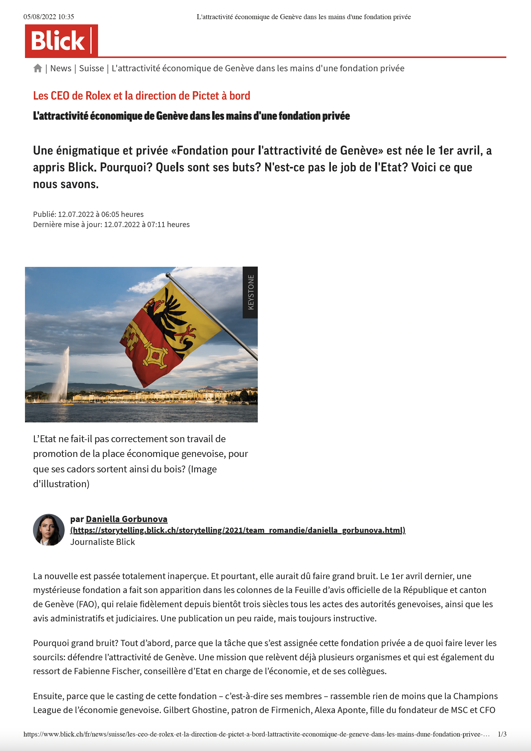 Premier article de presse paru dans le journal "Blick" le 12 juillet, qui décrypte les rôles et missions de la FLAG.